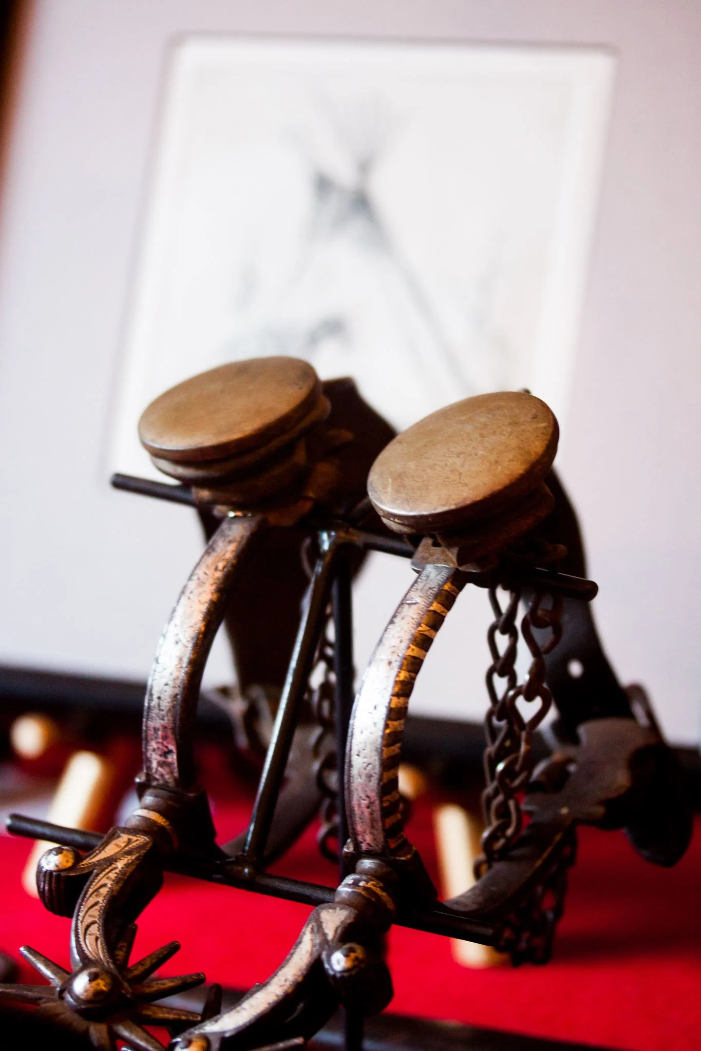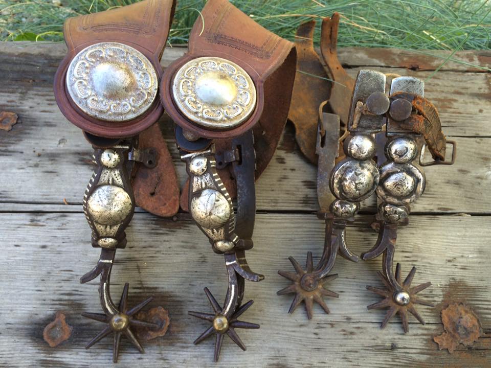 Antique and Finely Finished Double Mounted Transitional / Sonoran Style Spurs