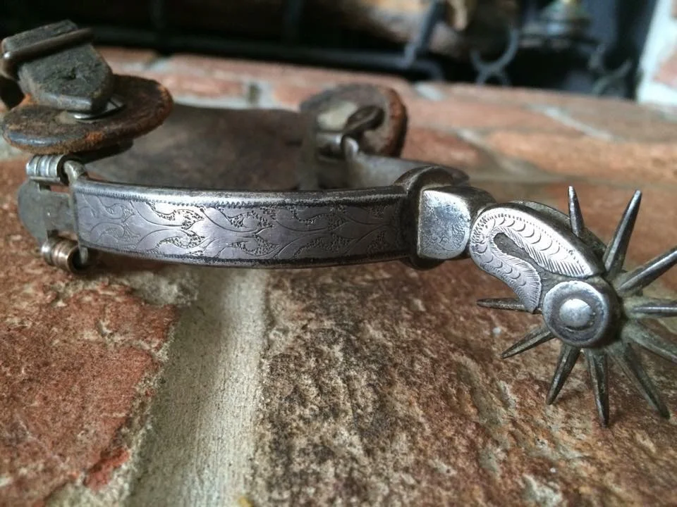 (SOLD) California Style Vintage Sterling Silver Engraved Heart Spurs